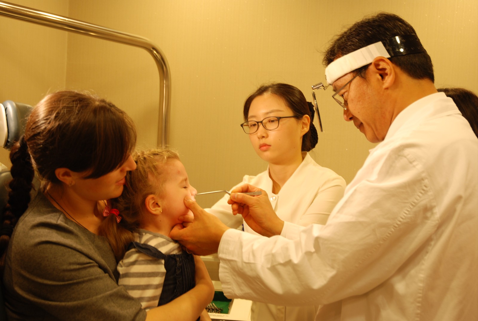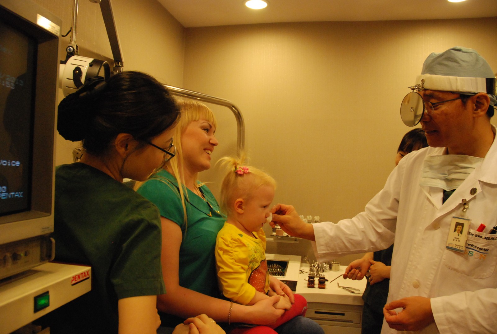 예송이비인후과 음성센터 (김형태 원장)는 최근 '나눔의료사업'의 일환으로 러시아와 몰도바에서 온 소아형 후두유두종 환아 세 명의 수술을 진행했습니다. 보건복지부가 주최하고 한국보건산업진흥원이 주관하는 나눔의료사업은 해외 저소득층 환자의 무료수술을 통해 세계에 한국의료기술을 널리 알리고자 하는 취지로 시작됐습니다. 예송이비인후과는 지난 2011년부터 매년 상?하반기로 나누어 꾸준히 참여하고 있습니다. 이번 2013년 하반기에 방문한 아이들은 모두 세명으로 소아형 후두유두종을 앓고 있었습니다. 러시아에서 온 Liliya Timoshenko (3세, 여)는 태어난 지 6개월 만에 후두유두종을 진단받고 러시아에서 3개월에 한번씩 종양제거술을 받았다. 하지만 재발이 잦고 후두가 상처로 좁아져 한국에 오기 전까지 목소리가 나오지 않았으며 호흡곤란 때문을 잠을 못 자고 식사하기도 힘든 상태였습니다. 러시아 국적의 Polina Gergert (4세, 여) 역시 1살 때 후두유두종을 진단받고 2~3개월에 한번씩 수술을 받았으나 목소리는 나오지 않는 상태였으며재발이 잦아 호흡곤란 증상이 자주 찾아왔습니다 몰도바 국적의 Irina Cheles (5세, 여)는 2살 때 후두유두종을 진단받았습니다. 몰도바는 의료 시설이 낙후해 가족들이 러시아로 이주해 치료에 매진했으나 1년에 다섯 번의 수술을 받아도 호전되지 않았습니다. 오히려 수술 후유증으로 인한 성대 유착이 심해져 숨쉬기 힘든 상태였습니다 세 명의 환아 모두 9월 25~27일 사이 예송이비인후과에서 수술을 받았으며, 특히 Liliya 와 Irina는 후두유두종 병변이 넓고 심해 2차 수술까지 받고, 수술 일주일 후 경과를 확인했습니다. 이들은 지난 2일에 창덕궁 비원에서 특별한 한국문화체험의 시간을 갖고 지난 7일 출국했습니다. Polina Gergert의 엄마, Yulia Gergert는 "최신 의료 시설을 갖춘 예송이비인후과 음성센터에서 예송나눔의료사업 프로젝트를 통해 무료로 수술 받을 수 있어서 감사드린다."며 "드디어 아이의 목소리를 들을 수 있다는 희망이 생긴다." 며 감사의 눈물을 보였습니다. 이들은 약 6개월~1년 후 예후를 지켜보고 재진이 필요할 경우 다시 한국을 찾게 됩니다. 러시아에서 열 차례 수술 받고도 재발하는 소아형 후두유두종은 후두유두종은 수십 개에 이르는 종양(사마귀)이 성대 부위를 덮는 질환으로 소아형의 경우 재발률이 80%에 이르는 질환입니다. 후두유두종의 원인은 인유두종바이러스(Human Papilloma Virus; HPV)에 의한 것 입니다. HPV 6형과 11형이 후두 점막에 감염되면 이곳에 수십 개에 이르는 종양(사마귀)이 성대 부위를 덮습니다. 후두유두종은 성인형과 소아형으로 나뉘는데 소아형의 경우, HPV 6형과 11형 보균 산모가 아이를 낳을 때 산도(産道)에서 태아가 제대로 빠져 나오지 못하고 멈추게 되면 아이에게 수직 감염될 수 있습니다. 이러한 바이러스가 아이의 후두 점막에 잠복해 있다가 5세 이전에 발생하며, 재발률이 높은 것이 특징입니다. 예송이비인후과 김형태 대표원장은 "소아형 후두유두종은 단순한 목소리 변화 때문에 불편한 것이 아닌 호흡곤란과 질식사의 위험이 있는 심각한 질환이다."며 러시아와 중국, 카자흐스탄, 몰도바 등 의료기술이 발달하지 못한 나라에서는 후두유두종이 난치병이자 불치병으로 분류되어 많은 아이들이 고통받고 있다고 말했습니다. ◑ 종양이 넓게 퍼지고 재발이 잦을 경우 수술적 치료 필요해 후두유두종은 수술과 함께 항바이러스제를 환부에 주입하는 방법이 있으나 러시아 아이들과 같이 수술로 인한 유착이 심하거나 종양이 넓게 퍼져있는 경우레이저 수술을 시행하는 것이 효과적입니다. 수술방법은 유두종의 크기나 상태에 따라 환자의 입을 통해 후두경을 삽입정교하고 미세한 현미경 기구로 유두종을 제거하는 후두미세수술을 시행합니다. 미세한 유두종 세포를 펄스다이레이저로 없애주는 PDL 수술은 성대 점막의 표면을 고르게 만들어 재발률을 낮추며 상처생성을 억제해 목소리 회복에 효과적입니다. 고도의 기술을 요하는 수술인만큼 숙련된 전문의에게 수술 받는 것이 중요합니다. 김형태 대표원장은 "어린 아이들이 의료 기술이 취약한 나라에서 열번 이상의 수술을 받고도 재발해 숨쉬기 힘들어 하는 모습을 보면 안타깝다,"며, "한국에서 좋은 기회를 통해 수술을 받고 완치 되어 가는 모습을 보면 기쁘다. 앞으로도 계속 해외의 많은 아이들에게 희망을 주고 싶다."고 말했습니다.