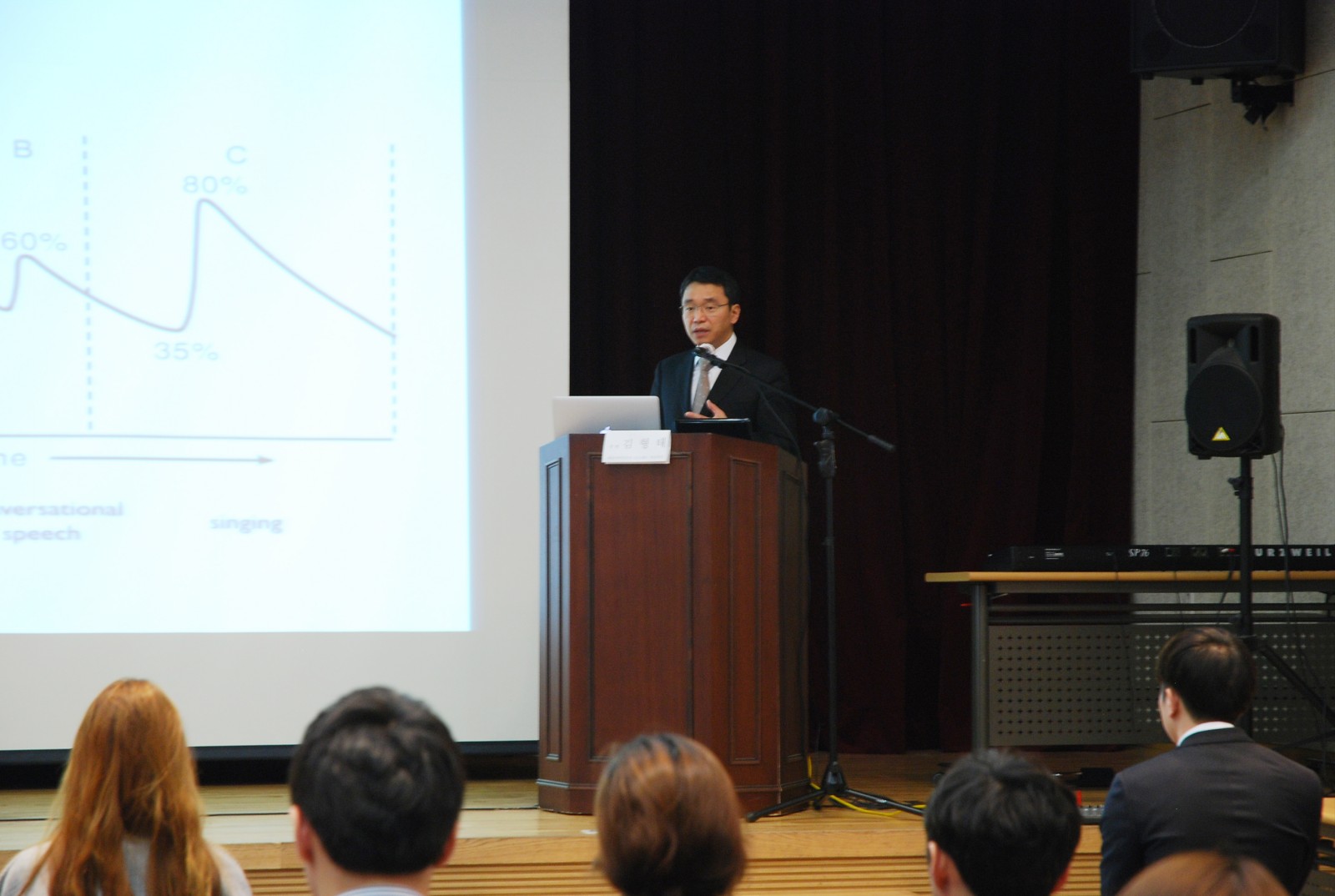 한국공연예술인의 음성전문분야에 대한 이론을 체계화하고 연구를 통해 예술가 및 교육전문가를 양성해 한국 문화예술 발전에 기여하고자 설립된 사단법인 ‘KAVPA(The Korean Association for Voice of Performing Arts)’가 주최하고 예송이비인후과 음성센터(이하, 예송음성센터)와 (주)제일약품이 후원하는 제2회 한국 공연예술발성 연구회 심포지엄이 지난 11일 삼성1동 문화센터에서 개최했습니다. 이번 심포지엄은 공연예술 발성의 또 다른 쟁점으로 부각되고 있는 ‘호흡’에 관한 주제로 각 공연예술분야의 전문가 강의와 마스터클래스(master class)등으로 진행됐습니다. 프로그램은 예송음성센터 김형태 대표원장님의 호흡의 발성 생리의 주제를 시작으로 진행됐으며 해외초청연자로 영국 Essex대학의 Tara McAllister-Viel 교수(Acting School 교수)가 ‘배우를 위한 호흡방법’에 대한 전반적인 강의와 마스터 클래스를 진행했습니다. 이번 심포지엄은 실용음악 전공학생, 뮤지컬 배우, 가수지망생, 성악가, 일반인 등 다양한 분야의 참가자들에게 발성과 호흡에 대한 전문지식과 정보를 전달했습니다.