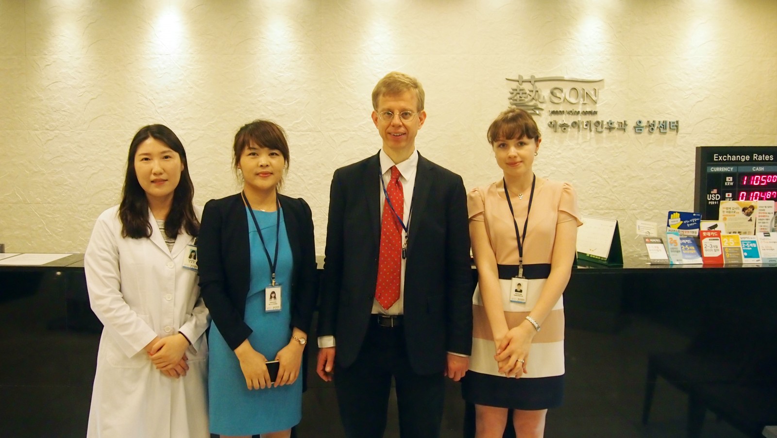 지난 6월 24일 광화문 교보빌딩 비즈니스센터 ‘CEO suite’ 에서 열린 ‘글로벌 헬스케어 의료관광 전문가 간담회’에 예송이비인후과 음성센터(이하, 예송음성센터)가 참석했습니다. 이번 간담회는 외국인환자 유치등록기관 중 유치 우수 의료기관 실무자와 학계 관계자를 초대한 행사로 한양대학교 서창진 교수, 청심국제병원 알렉산더(Alexander) 팀장, 이화여대부속목동병원 김상현 팀장, 스웨덴 Södertörn 대학의 Erik A Borg 교수, Kjell Ljungbo 조교수와 예송음성센터가 참석했습니다. 국내뿐만 아니라 해외의료관광분야 전문가와의 만남을 통해 세계화된 의료관광의 현주소를 살펴보고 이 산업의 활성화를 위한 토론이 이번 행사에서 진행됐으며 이로 인해 한국과 유럽 간의 의료관광정보 공유 네트워크가 구축 됐습니다. 예송음성센터는 간담회에서 음성질환에 관한 전문적 의료기술을 토론했으며 스웨덴 Södertörn 대학의 Kjell Ljungbo 조교수가 많은 관심을 보여 지난 6월 26일에 예송음성센터를 방문하기도 했습니다. Kjell Ljungbo 조교수는 예송음성센터를 둘러보며 깨끗한 병원 환경과 최신 장비들로 구성된 병원 시설에 찬사를 보냈으며 김형태 원장의 음성질환특성 및 진단과 치료, 수술 자료 등의 설명을 듣고 흥미로운 의료기술이라는 소감을 전했습니다.