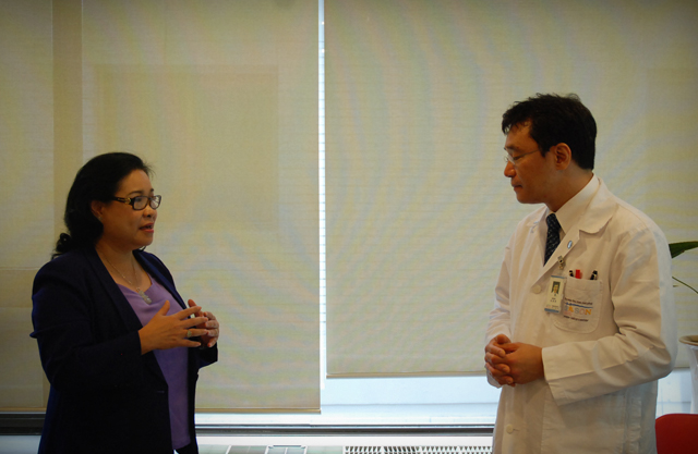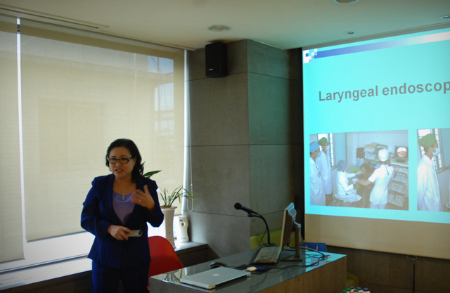 베트남 보건국 및 의료기관 관계자 예송 방문 ‘2012 베트남 한국의료체험 행사’ 차 한국을 방문한 호치민시 보건국 및 병원 관계자들이 지난22일 예송이비인후과 음성센터를 방문했습니다. 이번에 병원을 방문한 인사들은 호치민시 보건국Huynh Van Biet 부국장을 비롯해ENT이비인후과병원Nguyen Thi Ngoc Dung 병원장, 떰득심장병원Pham Bich Xuan 국제협력센터장 등입니다. 이들은 예송이비인후과 음성센터 및 검진센터인 아트세움을 둘러보며 깨끗한 병원 환경과 최신 장비들로 구성된 병원 시설에 찬사를 보냈습니다. 이어 김형태 원장의 음성질환의 특성 및 진단과 치료, 예송의 해외환자 유치 실적 및 해외진출 사례 등의 설명을 들은 뒤Nguyen 병원장이ENT이비인후과병원에 대한 브리핑을 실시했습니다. Nguyen 병원장은 “예송의 음성질환 치료 시스템이 매우 놀랍고 뛰어나 추후 베트남 의사를 선발해 연수를 받고 싶다”고 전했으며 아울러 한국형 음성학센터 설립 진행 시 예송의 협력을 당부했습니다.