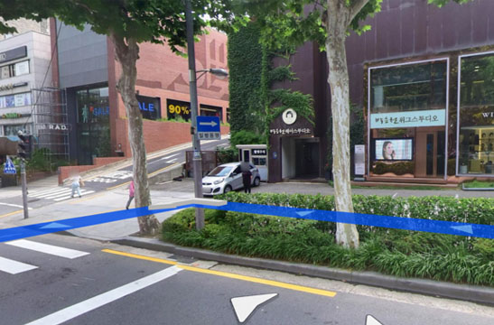 압구정로데오역 3번출구 에서 700m 직진, 청담동 명품거리를 지나 스타벅스 방면으로 사거리 횡단보도를 건넙니다.