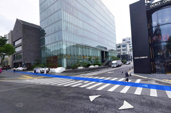 2 쭉 직진해서 돌체앤가바나 앞 횡단보도를 지나세요.