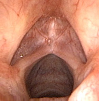 높은 소리를 낼 때 윤상갑상근이 수축하여 윤상연골과 갑상연골이 접근 하고 성대가 당겨져서 긴장하는 원리를 이용. 윤상연골과 갑상연골을 앞쪽에서 당겨 고정시킴 |